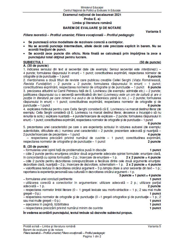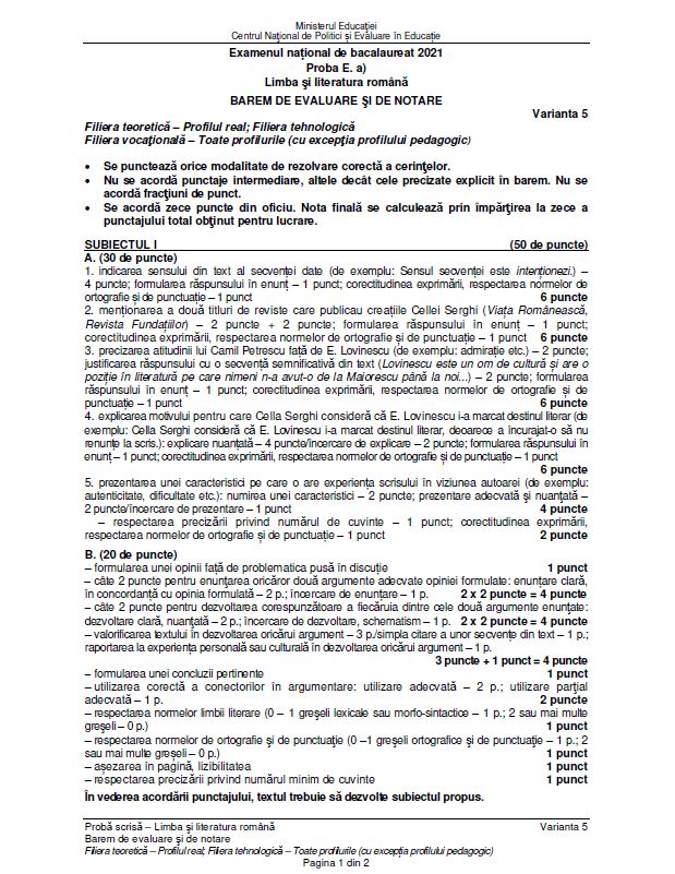 Citeste si: Subiecte Română BAC 2021 sesiunea august- septembrie: Barem de corectare