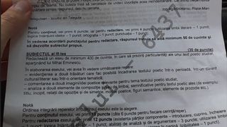La subiectul al III-lea, elevii au avut de realizat un eseu de minimum 400 de cuvinte în care să prezinte particularitățile unui text poetic studiat, care aparține marelui poet Mihai Eminescu.