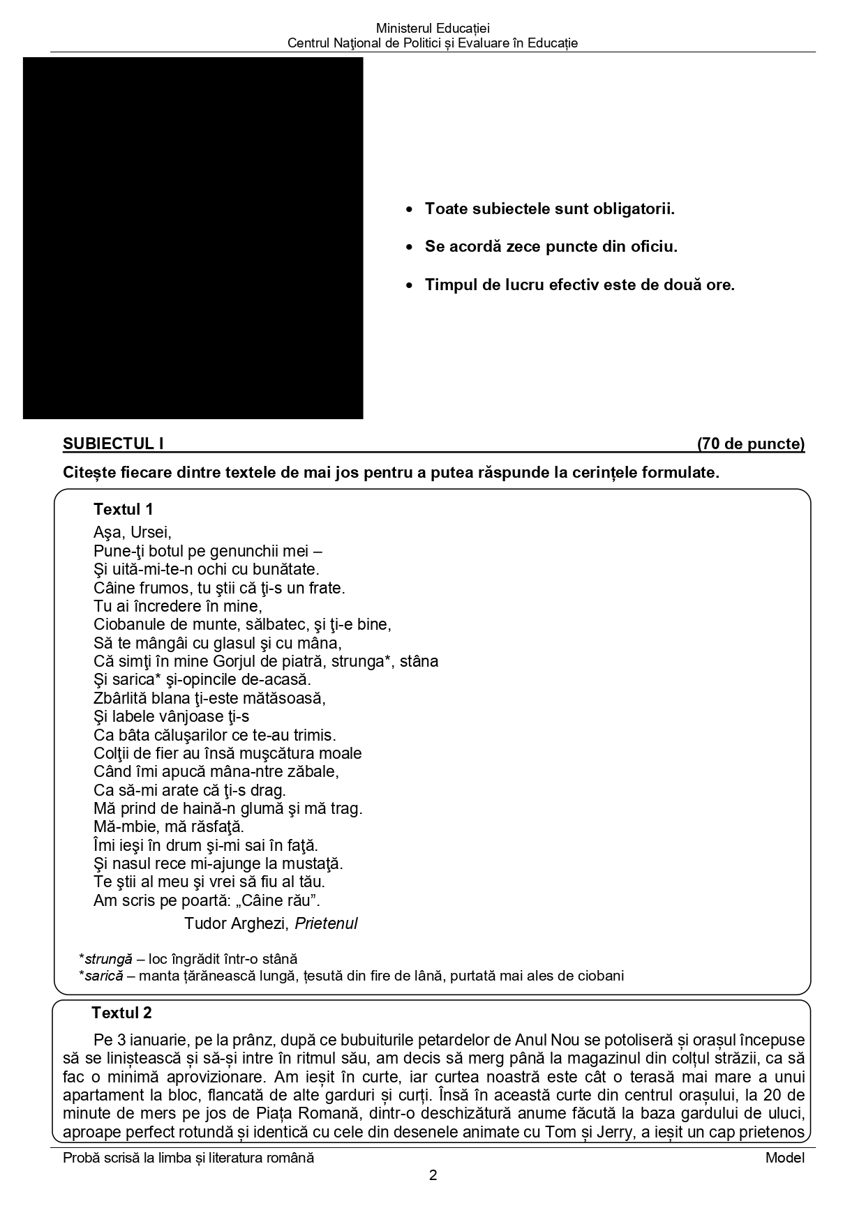 2 din 11 | Model subiecte Romana Evaluare Nationala 2024 -pag 1