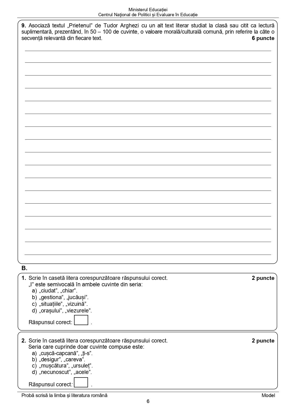 6 din 11 | Model subiecte Romana Evaluare Nationala 2024 -pag 3