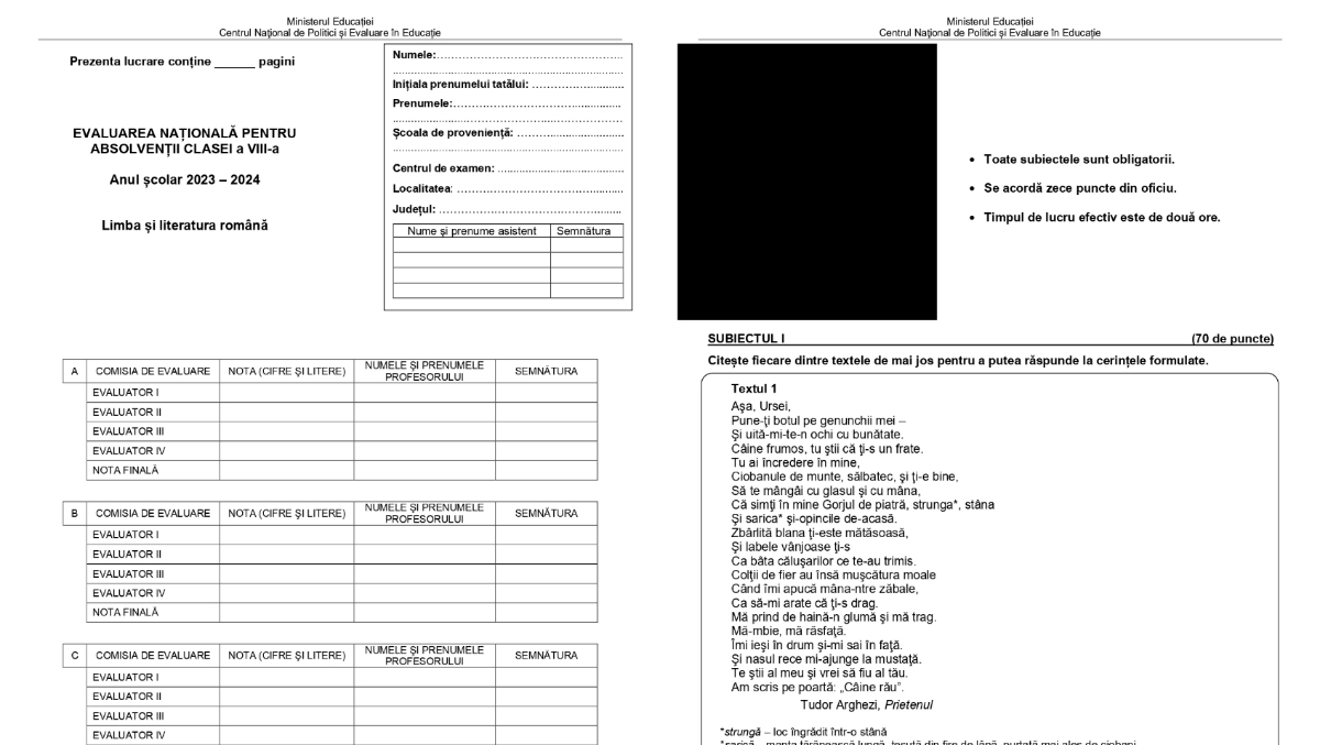 Vă prezentăm un model de subiecte la Română pentru Evaluare Națională 2024!Modelul a fost publicat pe EDU.ro.