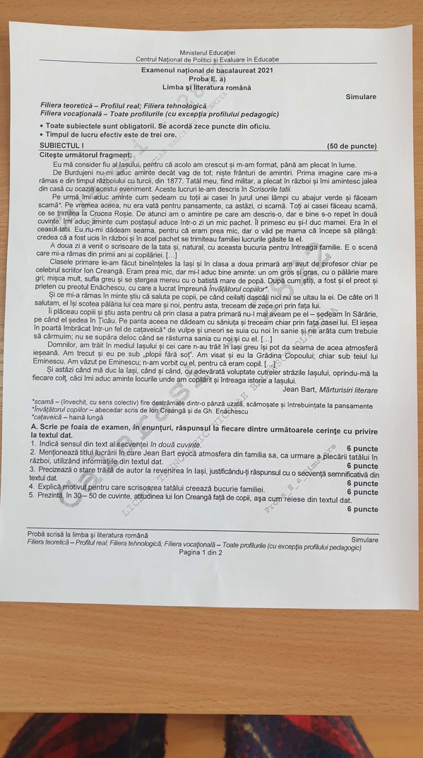 Citeste si: Subiecte simulare BAC 2021 Română pentru clasa a 11-a şi a 12-a. Barem de corectare- EDU.ro
