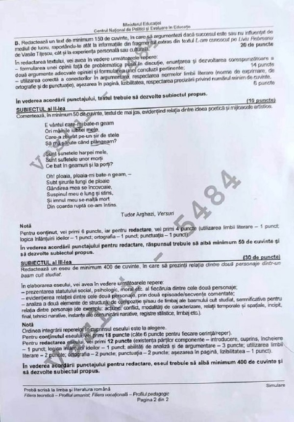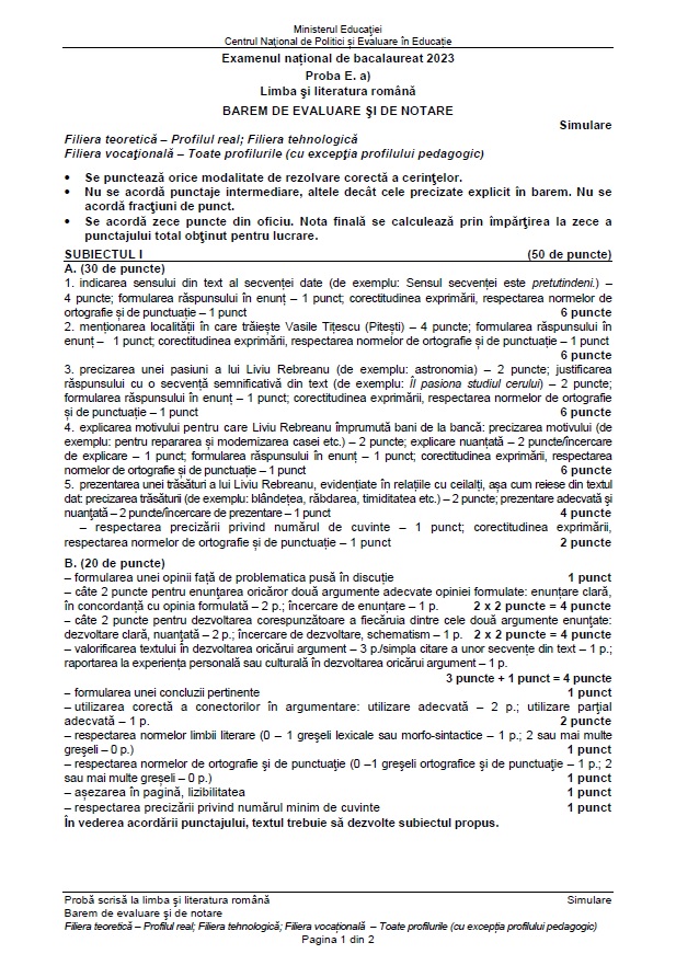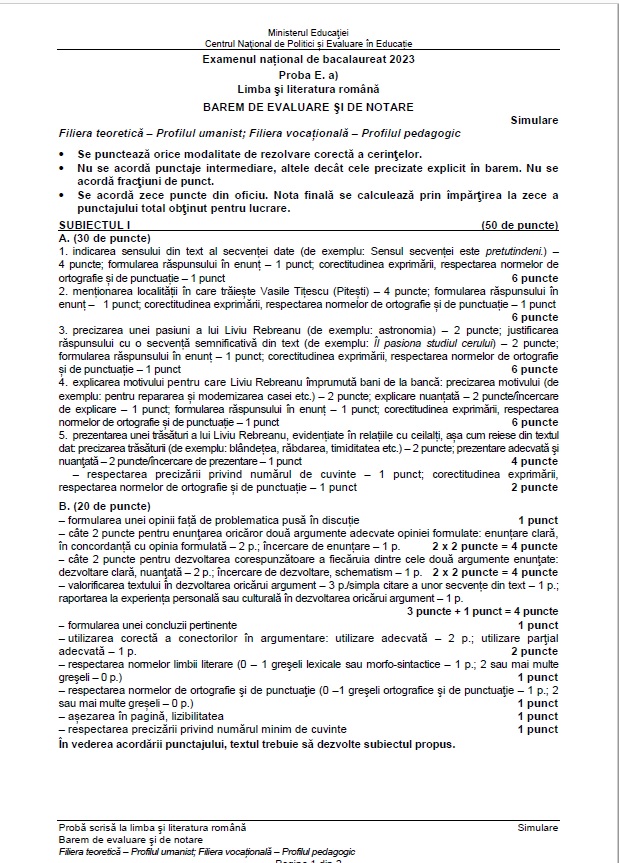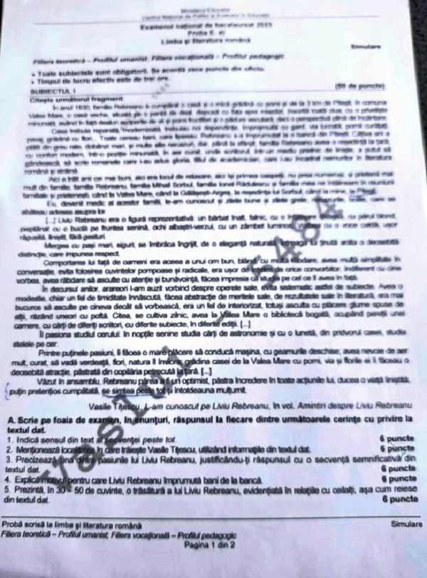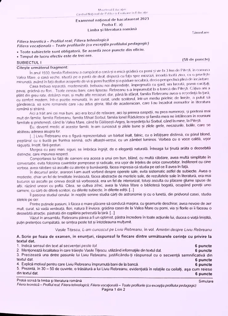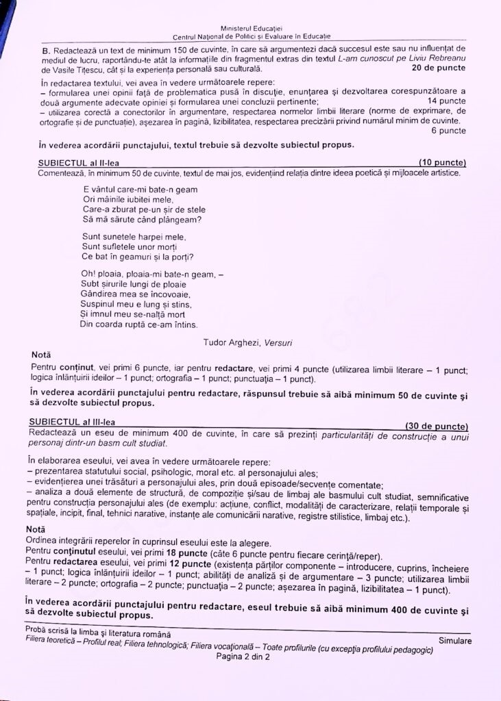 2 din 10 | Subiecte Română simulare BAC 2023. Ce subiecte au picat la real și uman?