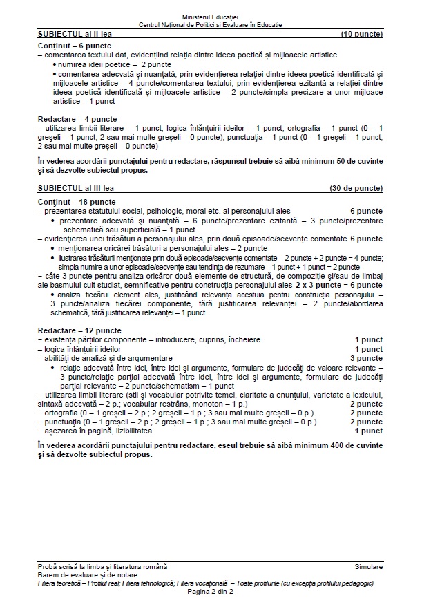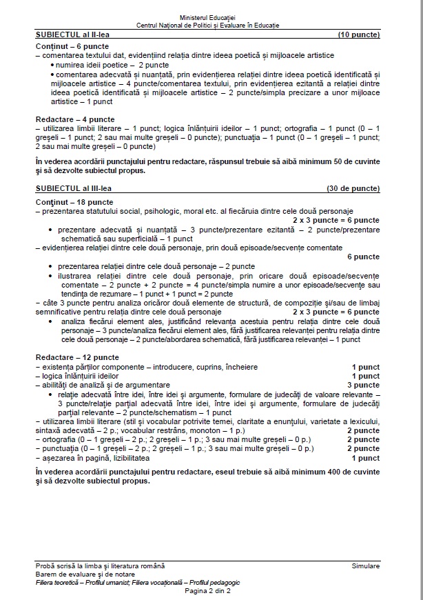 Subiectele și baremul de corectare și notare vor fi afișate pe subiecte.edu.ro.