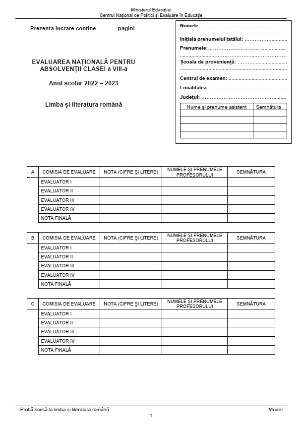 - 22 martie 2023: Limba şi literatura maternă – probă scrisă