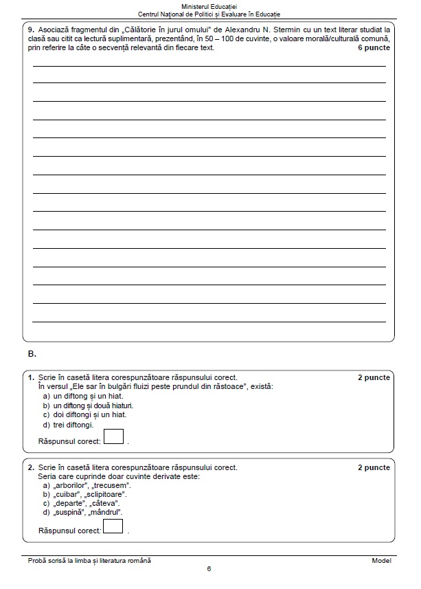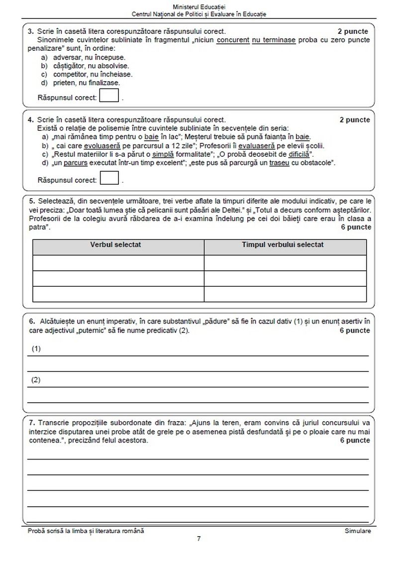 6 din 24 | Subiecte Română simulare Evaluare Națională 2023. Cum arată subiectele din acest an? Tot ce trebuie să știe candidații!