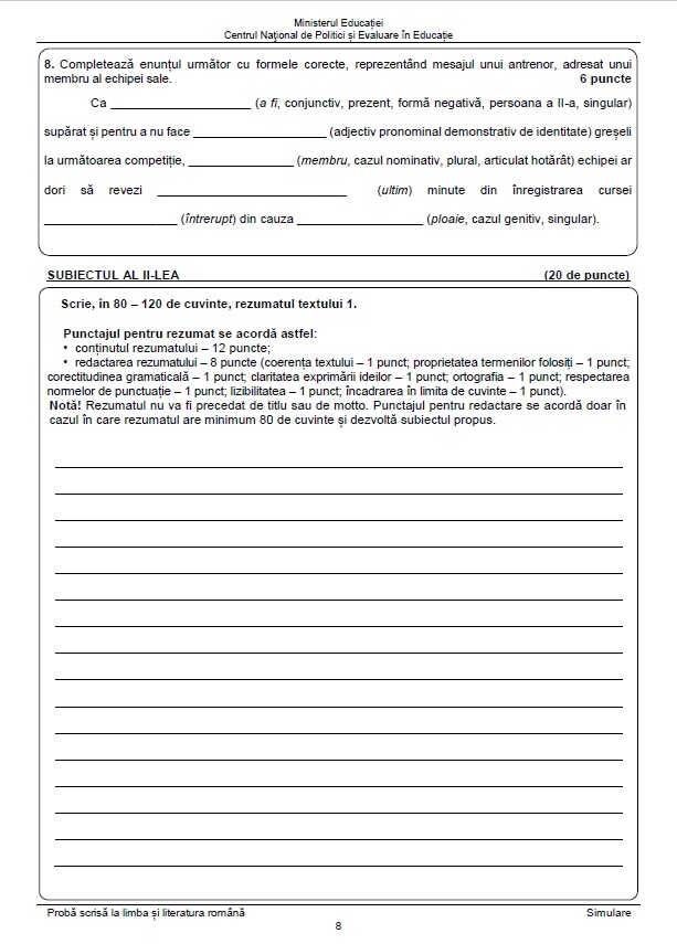 8 din 24 | Subiecte Română simulare Evaluare Națională 2023. Cum arată subiectele din acest an? Tot ce trebuie să știe candidații!