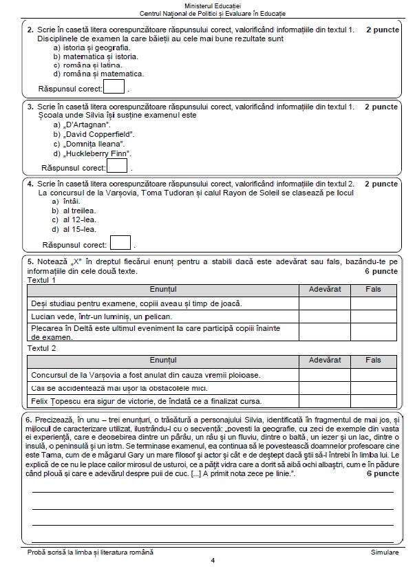 4 din 24 | Subiecte Română simulare Evaluare Națională 2023. Cum arată subiectele din acest an? Tot ce trebuie să știe candidații!