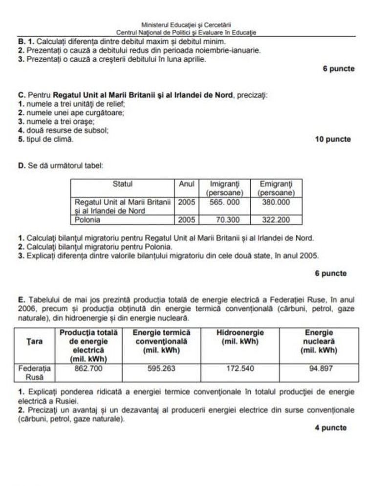4 din 9 | Simulare BAC Model de subiect la Geografie
