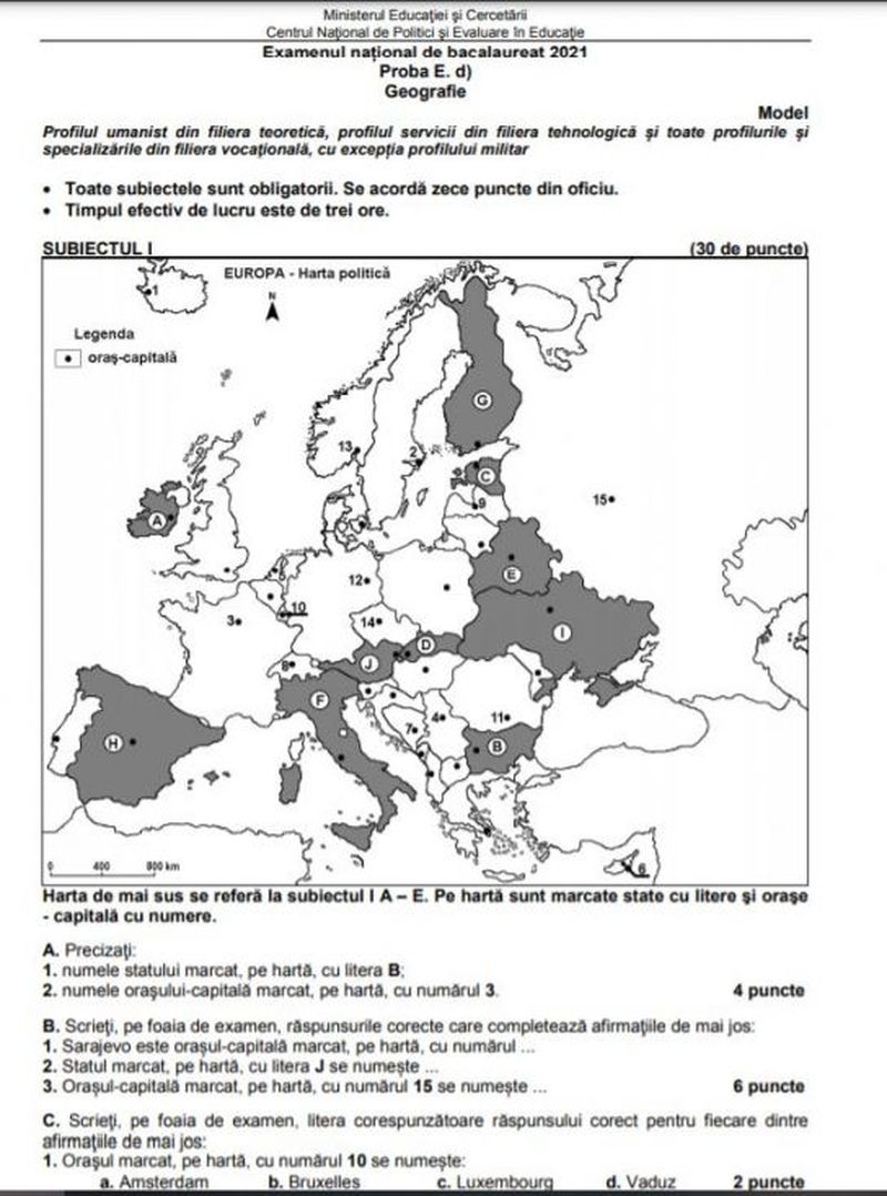2 din 9 | Simulare BAC Model de subiect la Geografie