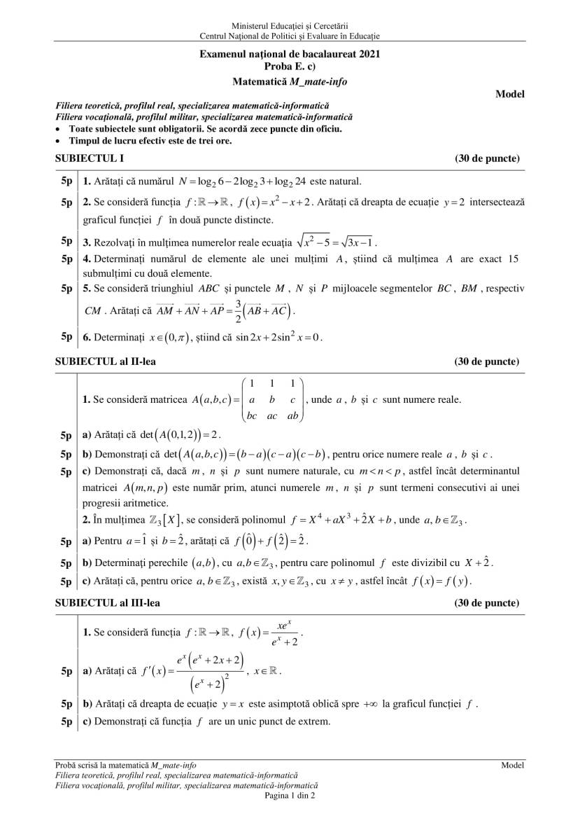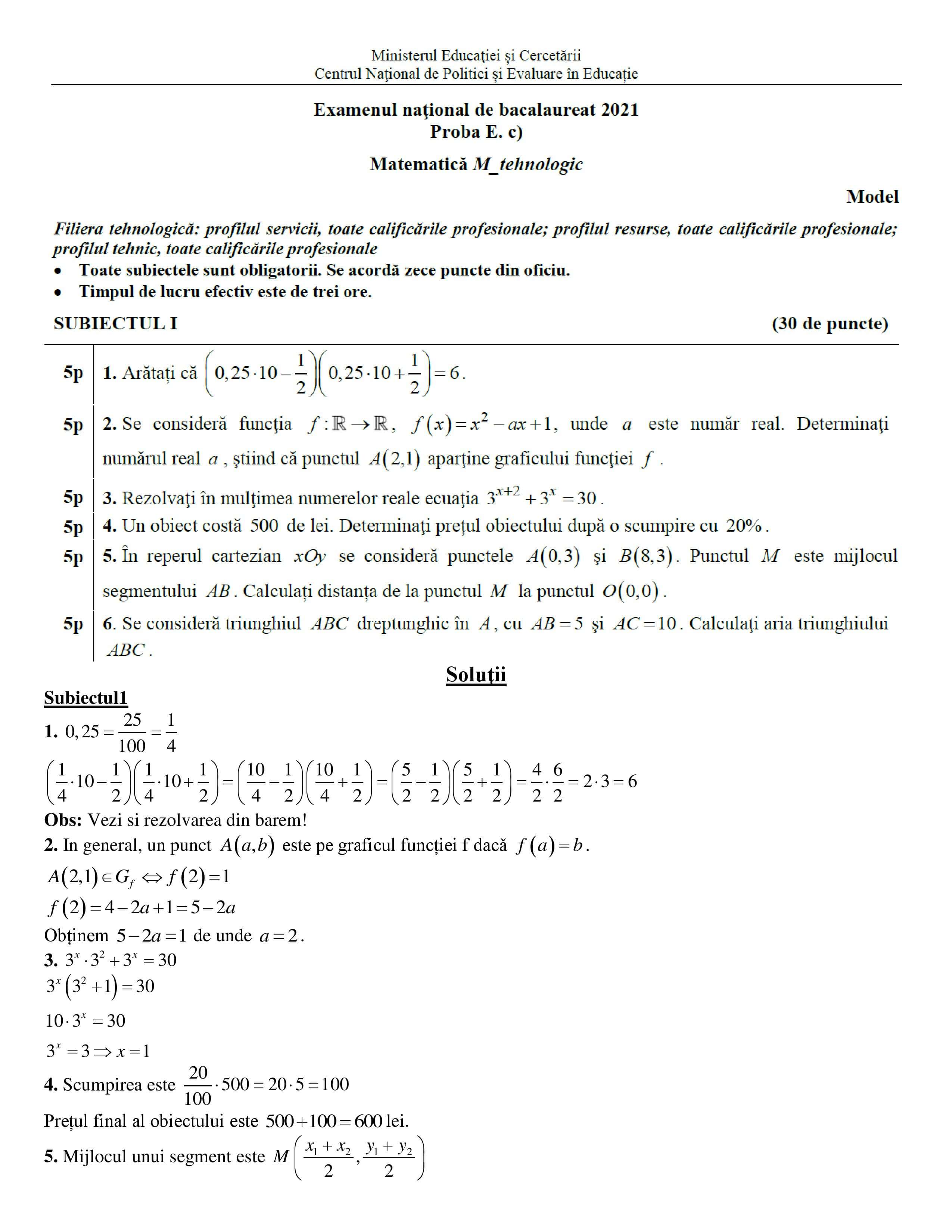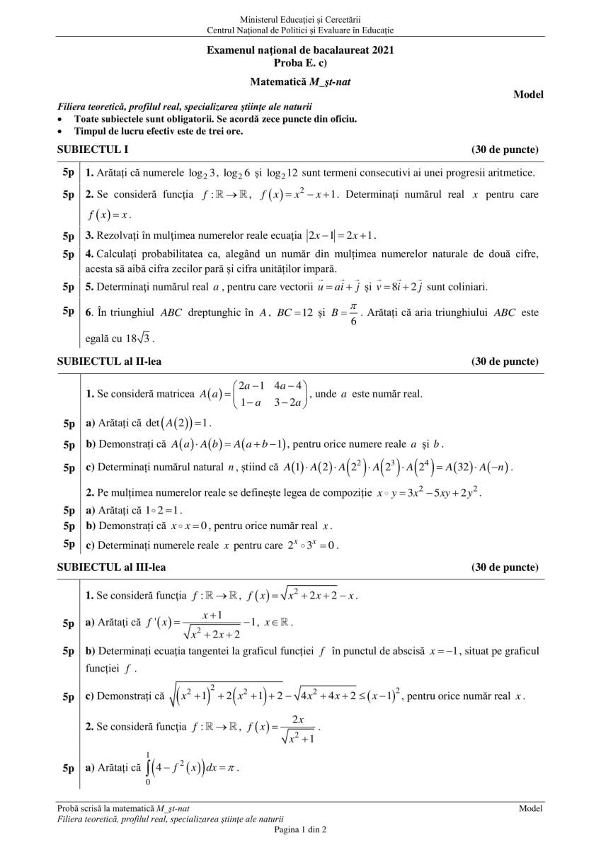 Subiecte simulare BAC 2021 Matematică. FOTO