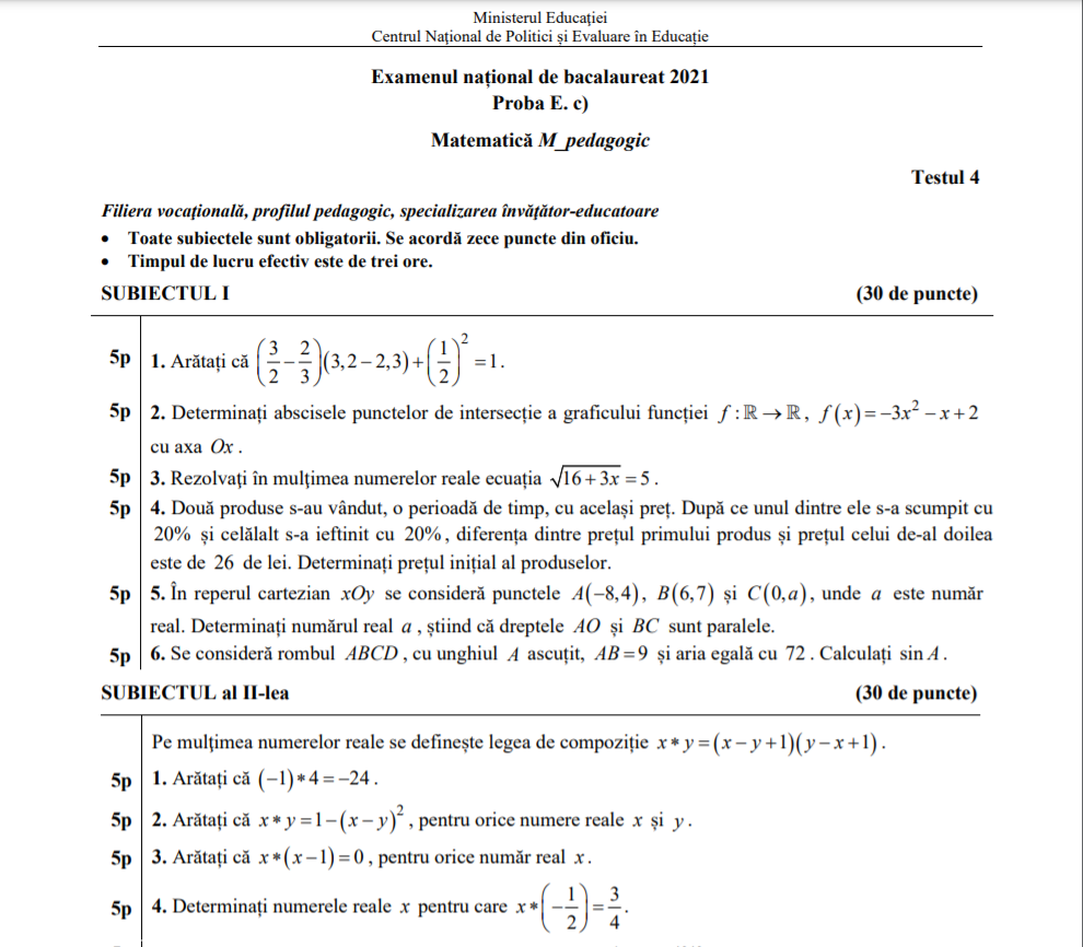 Subiecte simulare BAC 2021 Matematică. FOTO