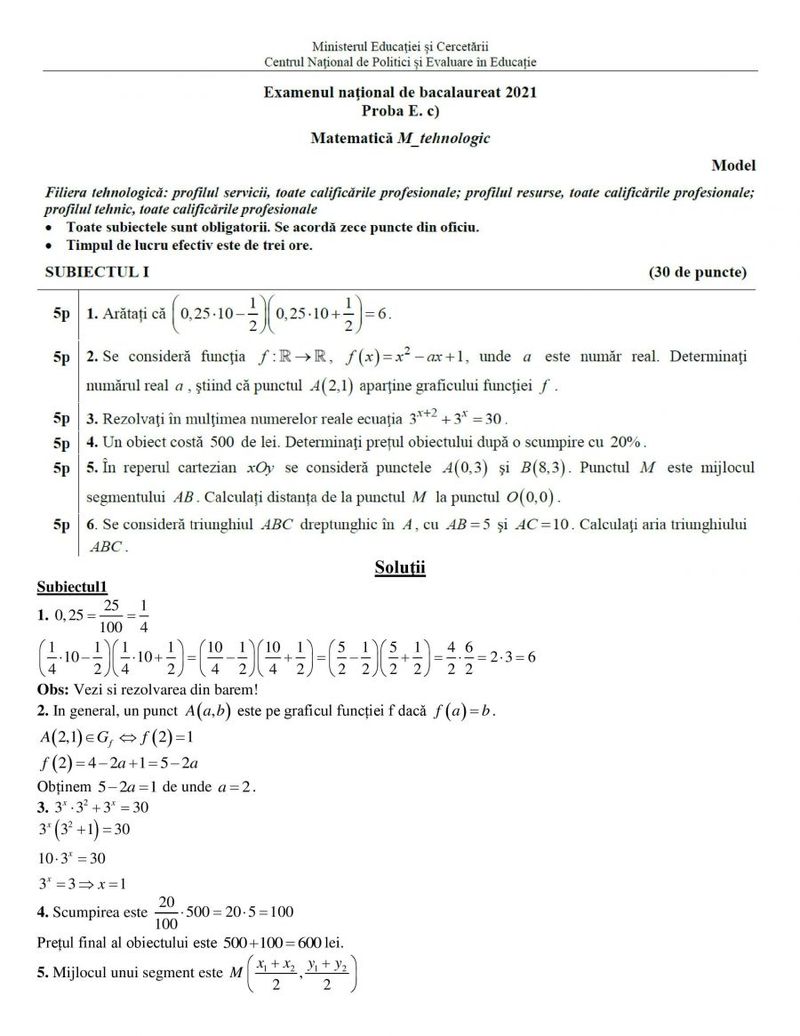 2 din 7 | Subiecte simulare BAC 2021 Matematică: M1, M2, M3 şi M4