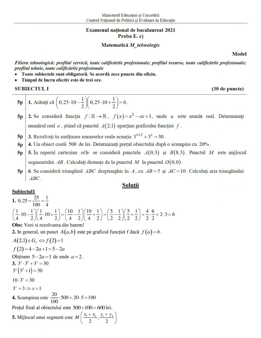 6 din 9 | Subiecte simulare BAC 2021 Matematică şi Istorie FOTO. Barem de corectare pe EDU.ro