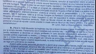 - formularea unui punct de vedere referitor la național-comunismul din România şi susţinerea acestuia printr-un argument istoric.