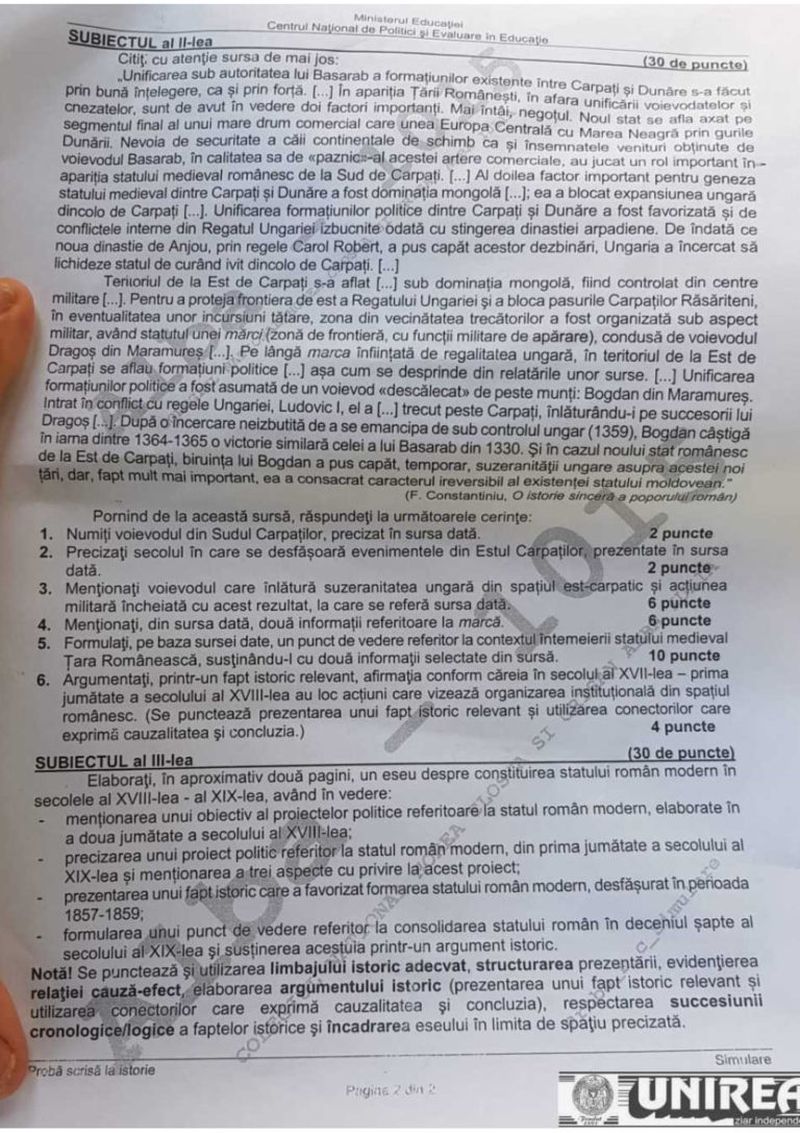 Subiecte simulare BAC 2021 Istorie. FOTO