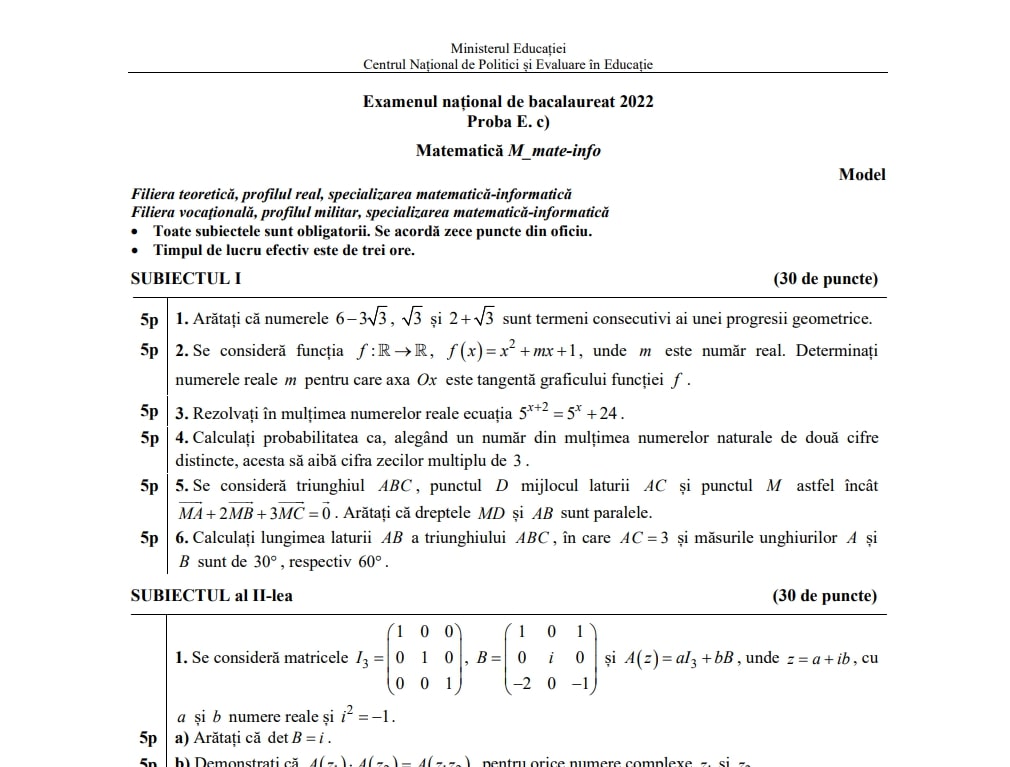 Citeste si: Simulare BAC 2022: Modele de subiecte pentru Română, Matematică şi Istorie
