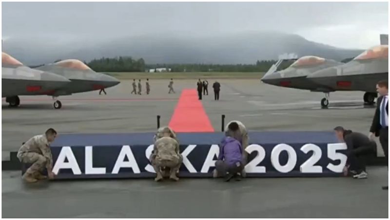 La întâlnirea pe aeroportul din Anchorage, cei doi lideri s-au salutat pe covorul roșu după ce au coborât din avioanele lor prezidențiale. Trump l-a aplaudat pe liderul de la Kremlin, apoi șefii de stat și-au dat mâna și au pozat pentru o fotografiile de presă.