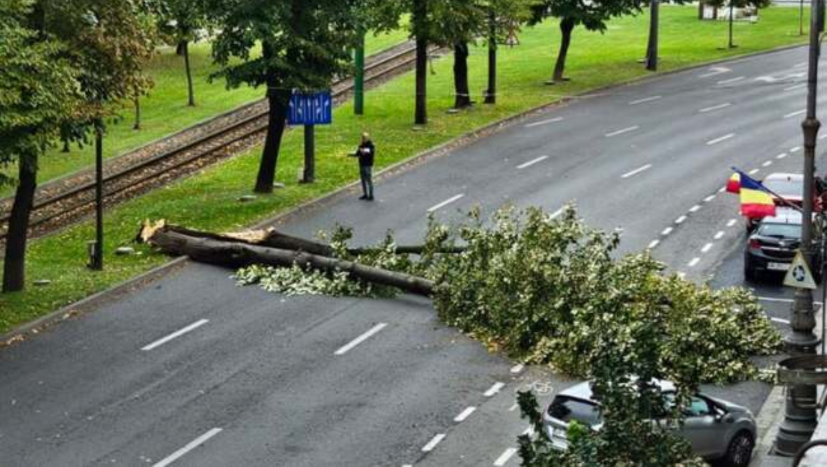 Un arbore s-a prăbușit pe un bulevard central din Arad, în apropiere de zona Podgoria, potrivit Aradon.ro.