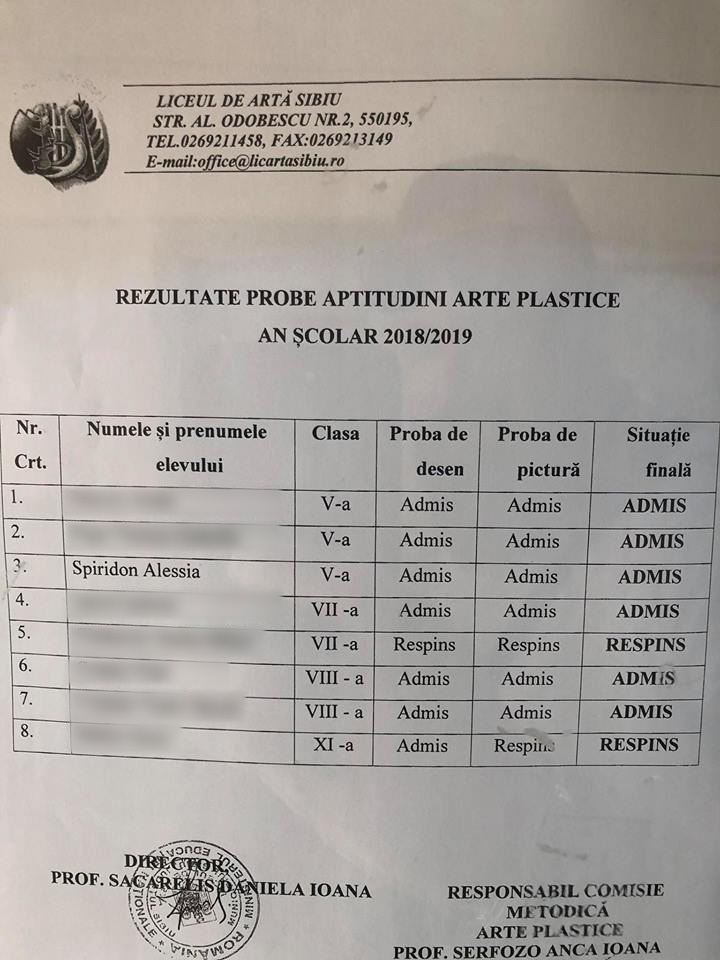 Superman de la Sibiu este in culmea fericirii! Fetita sa, Alessia, a fost admisa, azi, la Liceul de Arta din Sibiu! Micuta, in varsta de 10 ani, a sustinut zilele acestea probele practice si a fost acceptata la Liceul de Arta Sibiu, la clasa destinata elevilor care vor sa studieze pictura si desenul