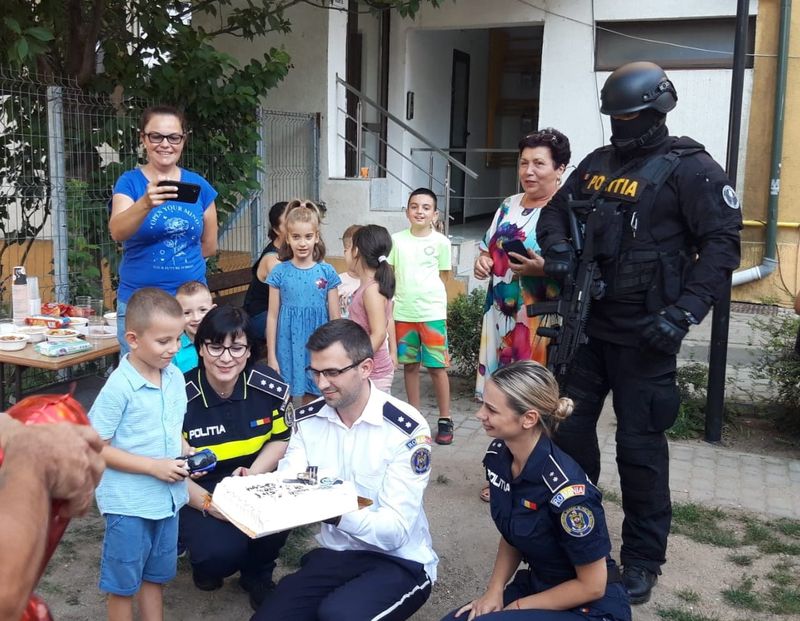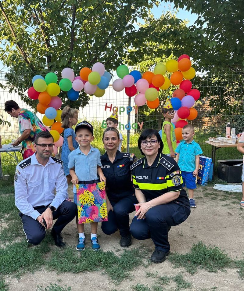 "Ne-am bucurat să fim alături de un copil care astăzi împlinește 6 anișori, și care își dorește să devină, cu ardoare, polițist. Așadar, astăzi, de ziua lui, ne-am gândit sa-i facem o surpriză lui Mădălin și să-i urăm "La mulți ani!".