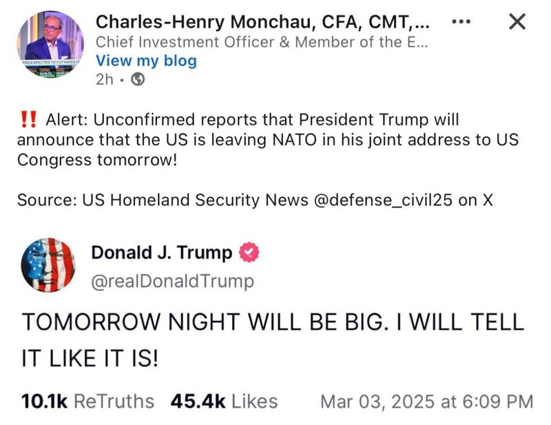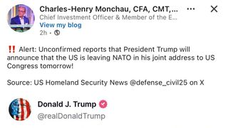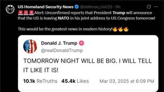 Mai multe surse susțin că în discursul din fața Congresului, Donald Trump ar urma să anunțe, de fapt, că SUA părăsesc NATO.
