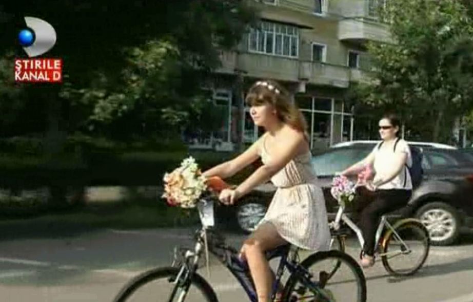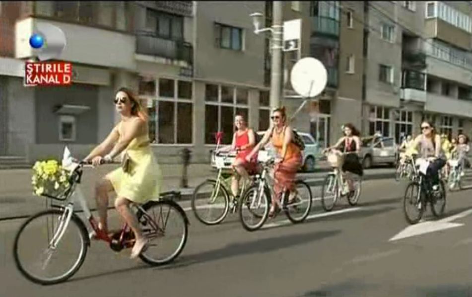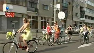 Sute de femei de toate varstele din Baia Mare au pedalat pe biciclete impodobite cu flori. N-au lipsit nici rochitele sau pantofii cu tocuri. A iesit un adevarat spectacol