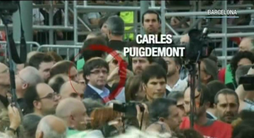 Multimea a fost monitorizata din elicoptere, iar printre oameni a ajuns si liderul catalan Carles Puigdemont, care considera ilegala manevra guvernului de la Madrid de a prelua conducerea regiunii.
