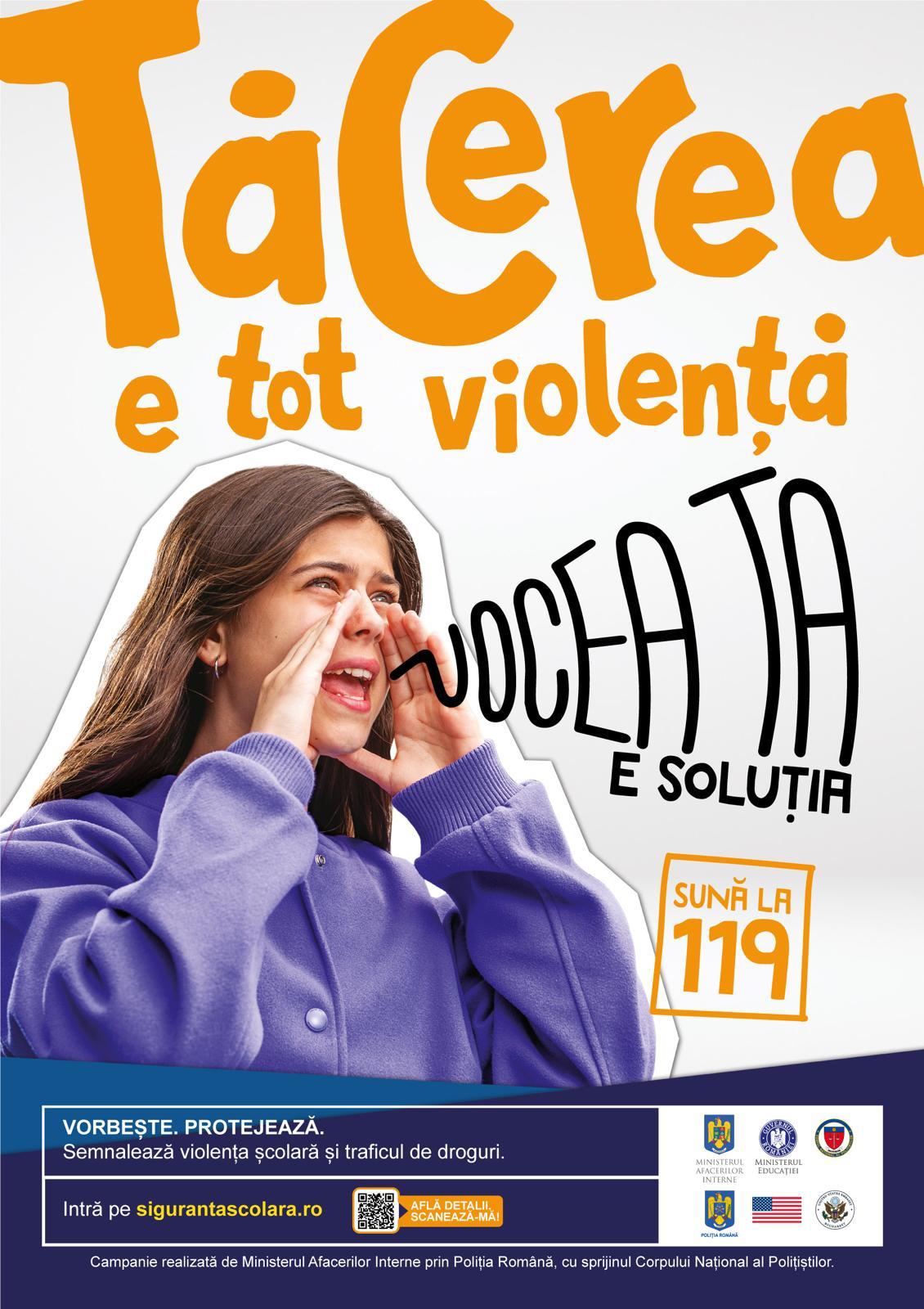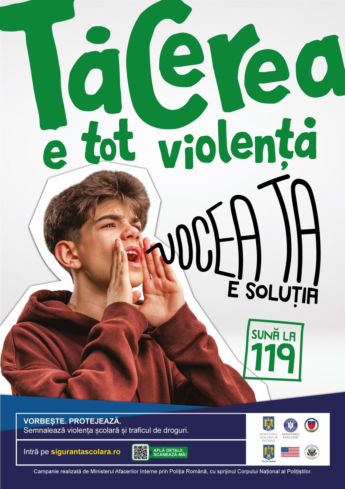 Ministerul Afacerilor Interne este autorul unei campanii care vine în ajutorul tinerilor. Numită „Tăcerea e tot violență. Vocea ta e soluția”, scopul ei este acela de a îi face pe tineri să conștientizeze că ei contează. Mic cu mic se face mare, iar fiecare voce care contribuie la stoparea violenței, de orice manieră, ajută.