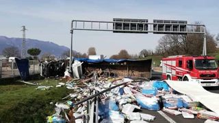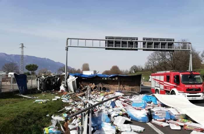 Traficul a fost blocat vreme de câteva ore, după ce marfa din cele două TIR-uri s-a împrăștiat pe autostradă.