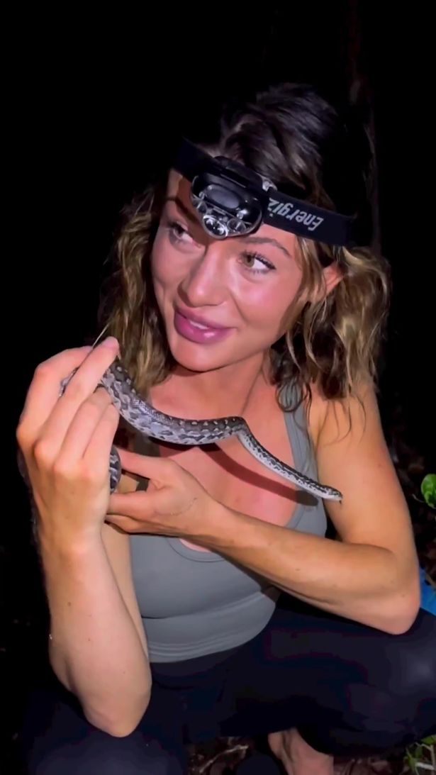 În legenda la postare, femeia a explicat: „ Cel mai rău mosc de șarpe pe care l-am experimentat vreodată. Boa Bimini (cunoscută și sub numele de șarpe de păsări).