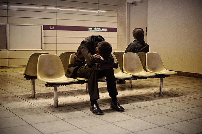 Surprinzator, in Tokyo, acest lucru nu mai este considerat ceva neobisnuit, astfel ca trecatorii nici nu dau importanta oamenilor care cad lati de oboseala, chiar pe strada.