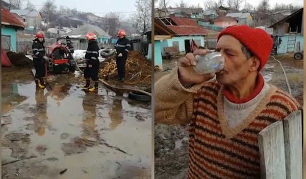 Un barbat din Negresti, judetul Vaslui a carui locuinta saracacioasa a fost inundata in urma topirii zapezilor a fost filmat savurand linistit un pahar de alcool in timp ce mai multi pompieri se chinuiau sa ii mai salveze ceva din gospodarie, scrie Vremea Noua.