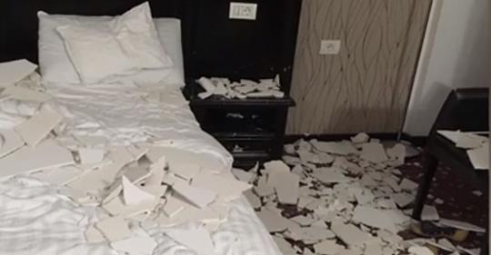 Turistii cazati intr-un hotel din Baile Felix au trait clipe de cosmar dupa ce bucati de tencuiala din tavan s-au desprins si au cazut peste ei.