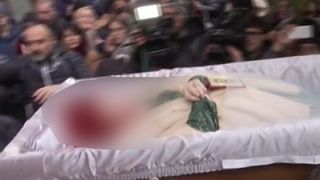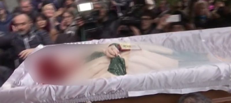 La iesire, sicriul cu trupul neinsufletit al artistei era descoperit, ceea ce a favorizat captarea unor imagini cu Stela Popescu, inainte de a fi urcata in masina mortuara.