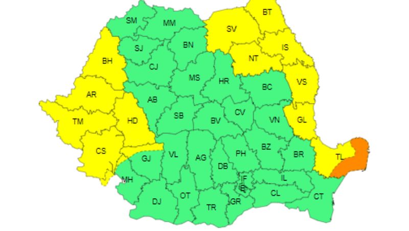 Începând de astăzi, mai multe județe se vor afla sub cod galben și portocaliu de ploi. Sunt așteptate ploi torențiale, iar cantitățile de apă care se vor înregistra pot ajunge până la 40 l/mp, în unele regiuni.