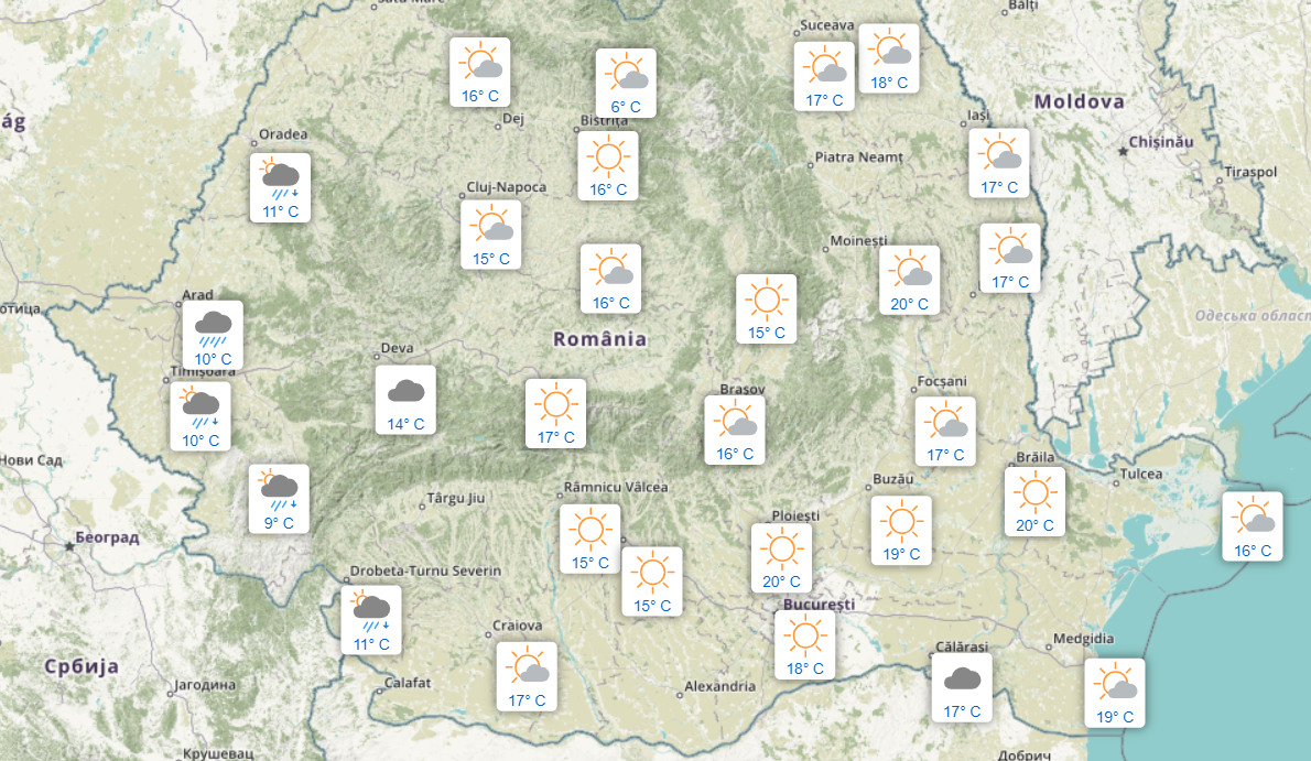 Câte grade se înregistrează astăzi, în România:
