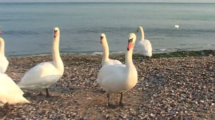 Dupa o saptamana cu frig si ninsori Soarele ne zambeste din nou. Sunt 7 grade celsius in atmosfera acum pe litoral. Iar de vremea frumoasa se bucura atat turistii cat si lebedele care plutesc pe mare.