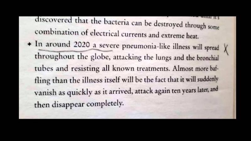 O a doua carte care vorbește despre o ”apocalipsă” provocată de ”o boală mortală” a anului 2020 este ”End of Days: Predictions and Prophecies about End of The World” (Sfârșitul zilelor: Predicții și profeții despre sfârșitul lumii), lansată în anul 2008 de Sylvia Browne, o autoare care spunea despre ea că este ”medium”. ”În jurul lui 2020, o boală severă asemenea unei pneumonii se va răspândi pe tot pământul, atacând plămânii și tubii bronșici și care va rezista oricărui tratament cunoscut.