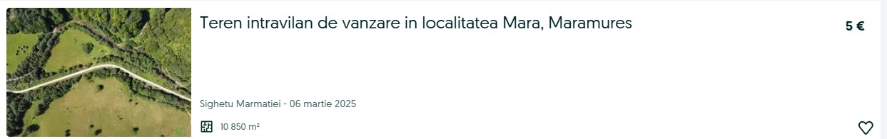 Teren intravilan, la doar 5 euro/mp, în Maramureș, conform unui anunț publicat pe OLX: Are curent, drum asfaltat și este amplasat într-o zonă cu potențial turistic