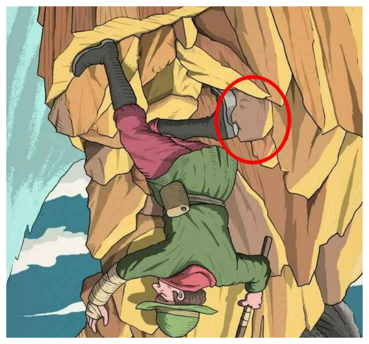 Dacă nu ați reușit să găsiți chipul în timpul acordat, încearcă să mai cauți cu atenție. Dacă totuși nu ai găsit soluția, adoptați o abordare ieșită din comun și înclinați imaginea cu susul în jos, veți putea observa fața celui de-al doilea bărbat în stâncile din partea dreaptă a imaginii.