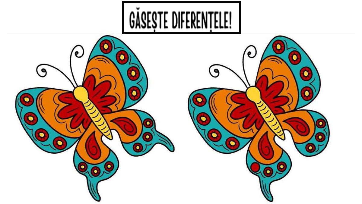 Un test de perspicacitate îți poate reda cheful de viață, într-o zi plictisitoare. Provocarea de astăzi este de a identifica trei diferențe între cei doi fluturi.