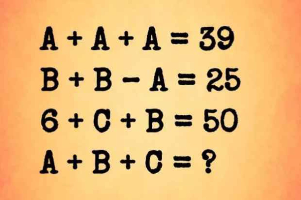 În imagine observăm că A+A+A=39, ceea ce înseamnă că A=13. Dacă B+B-A=25 sau 2B=25+A înseamnă că 2B=38, ceea ce rezultă B=19.