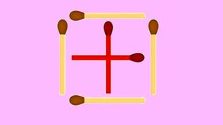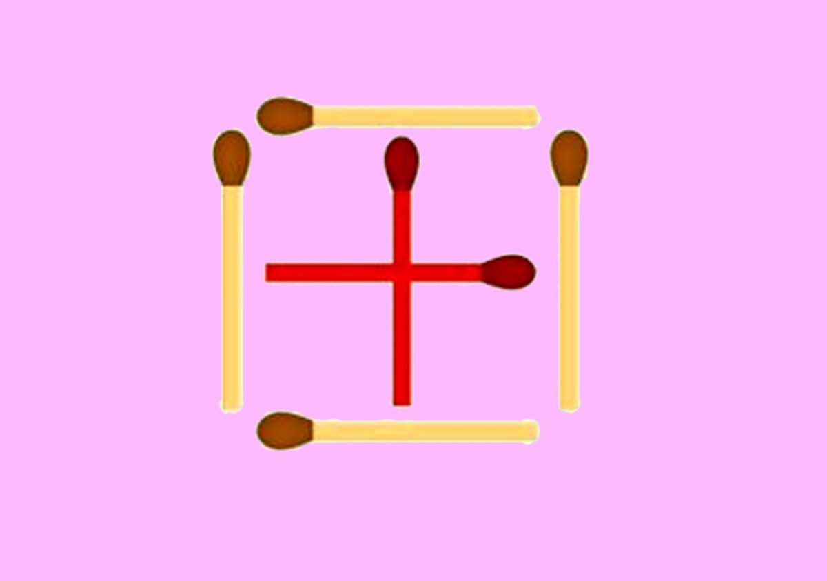 Pentru a forma cinci pătrate trebuie să muți cele două bețe de chibrit care formează "acoperișul casei". Acestea trebuie apoi poziționate în formă de plus, în interiorul pătratului mare care a rămas.