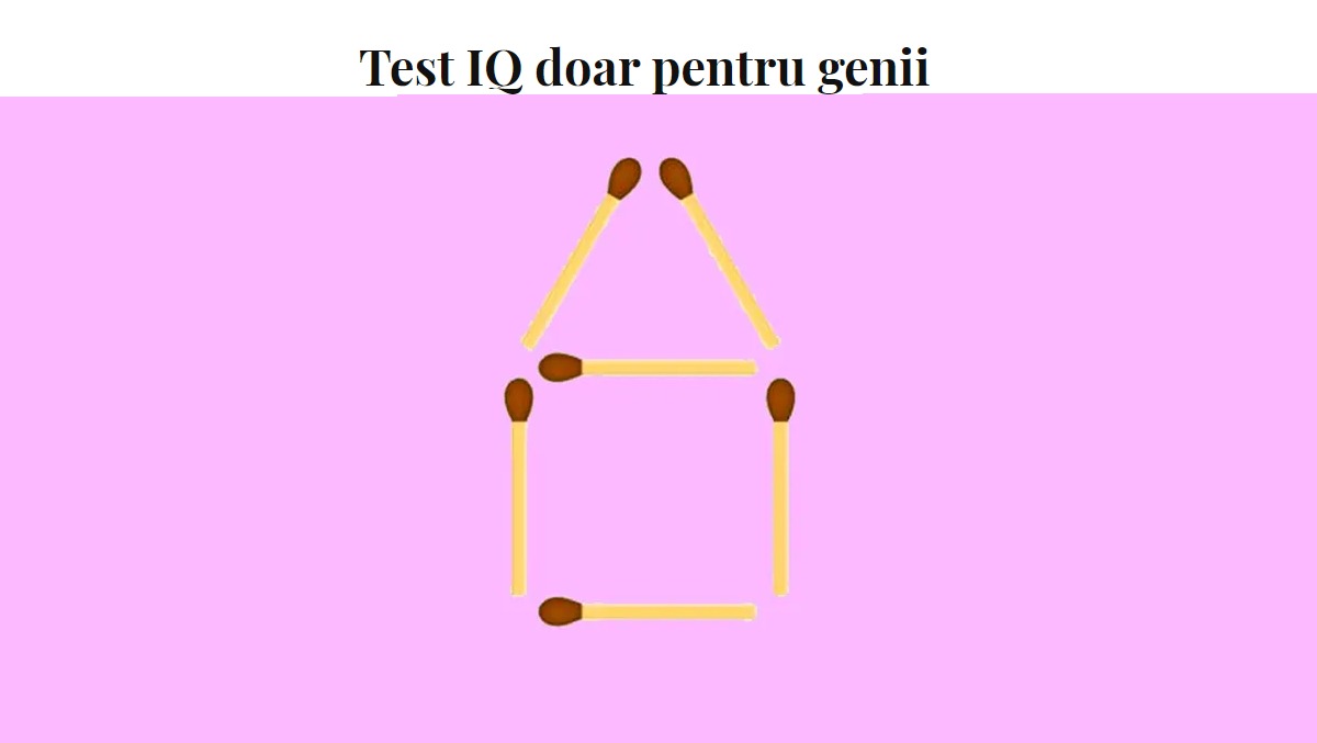 Ai o "casă" compusă din șase bețe de chibrit. Misiunea este de a muta doar două bețe de chibrit pentru a obține cinci pătrate.