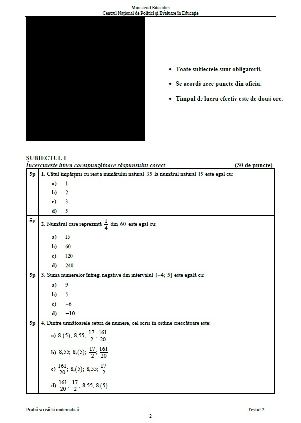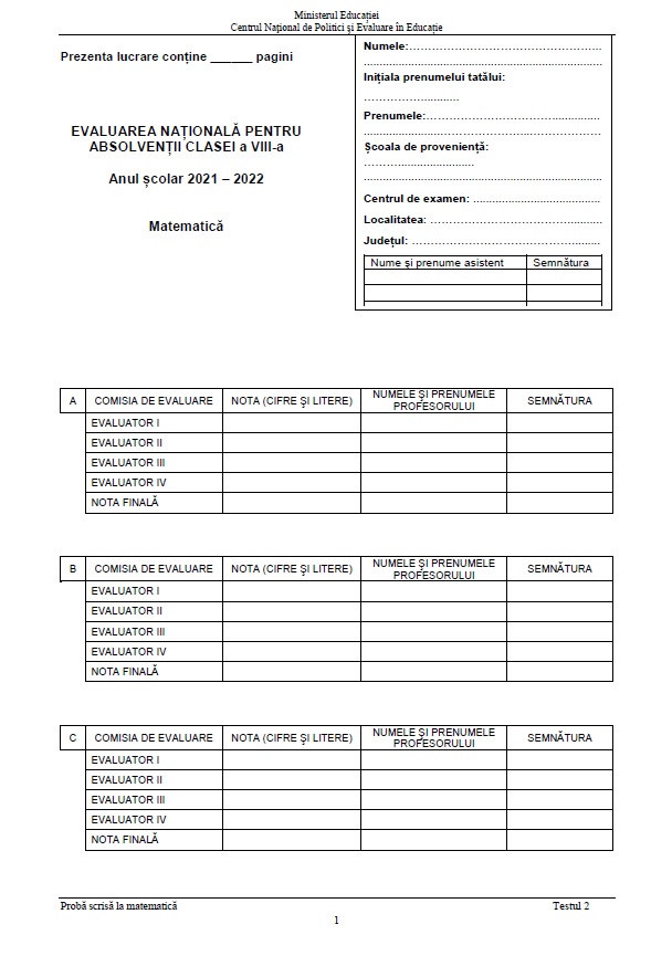 Cel de-al doilea set de teste de antrenament pentru elevii din clasele a VIII-a a fost publicat de Ministerul Educației, Centrul Național de Politici și Evaluare în Educație. Iată cum arată modelele de subiecte pentru Evaluarea Națională!