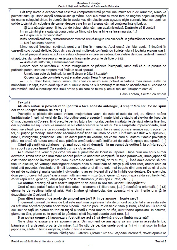 3 din 9 | Modele de subiecte Evaluarea Națională 2022- Limba Română.