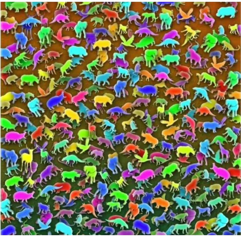 Utilizarea culorilor este concepută pentru a te deruta, precum și poziția animalelor.