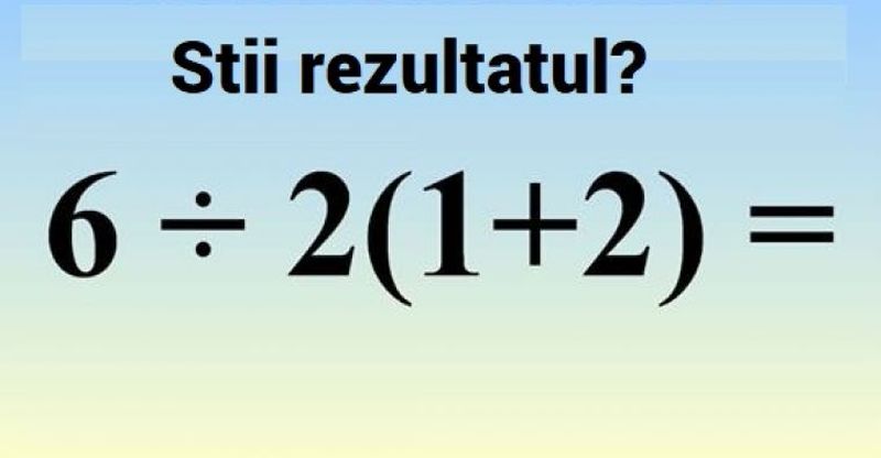 Recent multe persoane au ajuns să se certe în mediul online din cauza rezultatului diferit pe care îl obțineau calculând 6÷2(1+2)=?. Răspunsul corect în acest caz era 9.