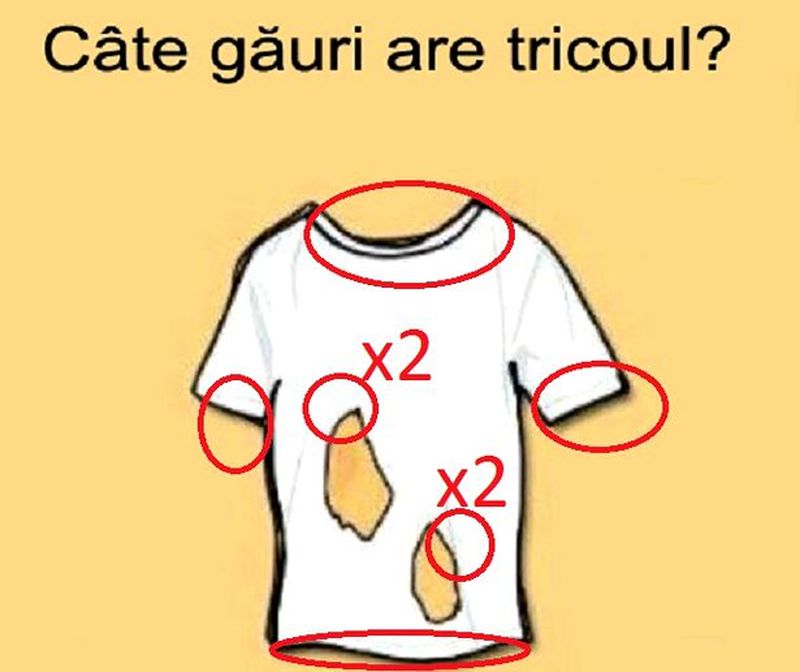 2 din 3 | Testul de care nu mulţi au trecut: Câte găuri are tricoul din imagine? Mulţi spun 2, alţii 6, dar răspunsul este altul